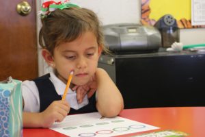 To accomplish the first goal, our overall program stresses several academic areas: listening skills, auditory discrimination, visual discrimination, alphabet recognition, short and long vowel sound recognition, letter blending, and reading words and sentences. These skills are the building blocks to success in the academic world. Going beyond that, beginning math concepts and letter and word writing are also taught. The principles we teach are not intended to be exhaustive but rather to give the children a sense of knowledge and accomplishment. Exposure to various skills stimulates learning and creates a desire to learn even more, setting the stage for the coming educational years. Academics are not the most important part of the students’ education, though. Christ is.